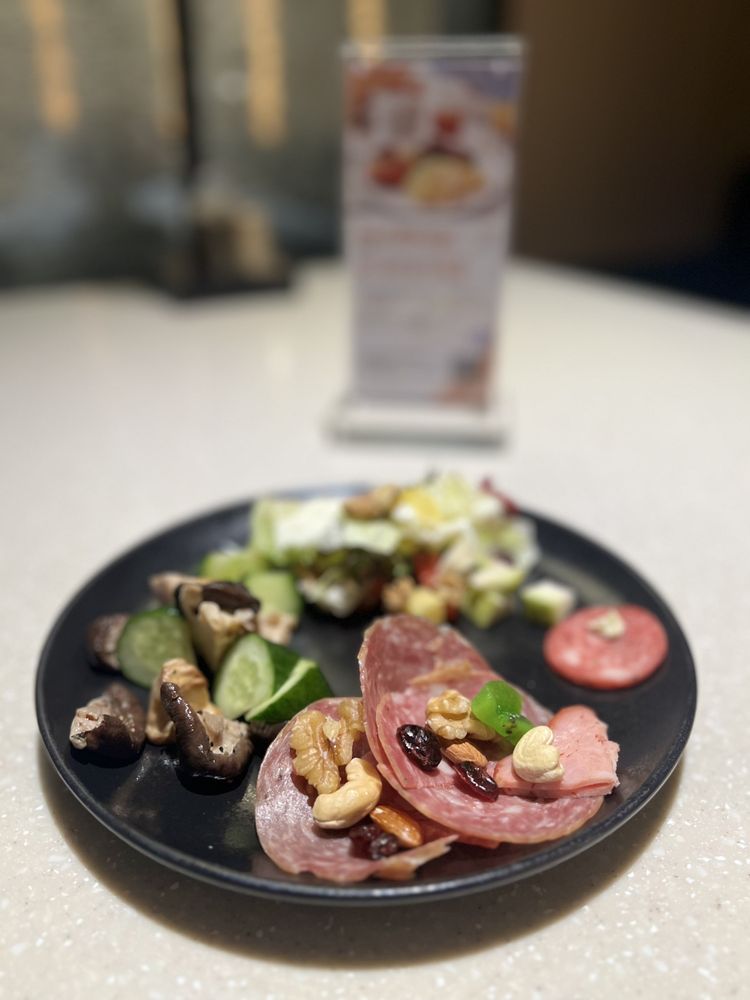 The emphasis is on thirst-quenching cocktails, especially those you might imagine drinking poolside on vacation. The Dutch n’ Stormy subs jenever for rum, while the Rozatta exhibits strong Israeli influences in the use of arak, amaretto syrup, lemon, rose water, and mint. The selection of wines, meanwhile, is wide-ranging; you’ll see appellations from Romania, South Africa, and Israel.